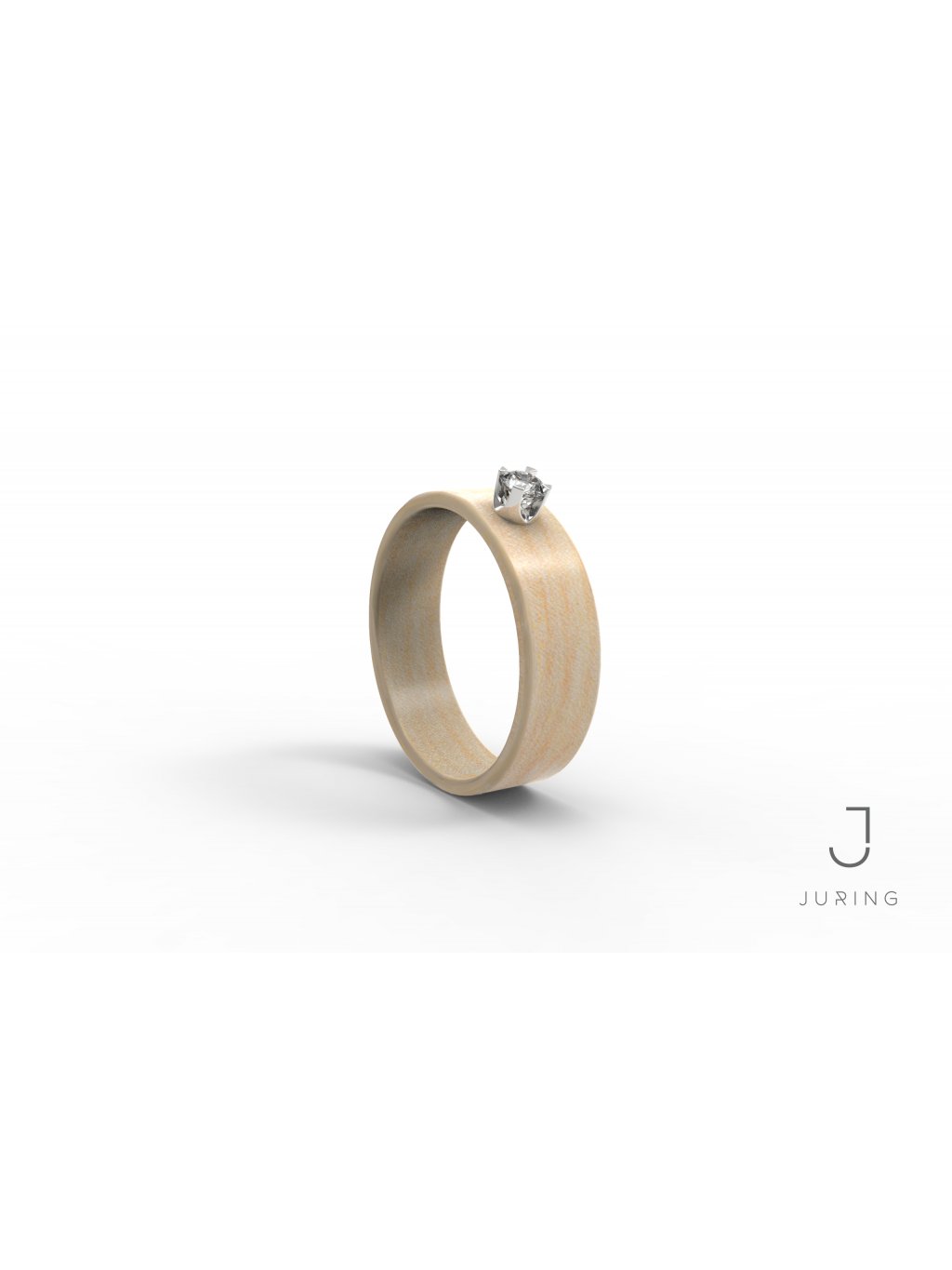 Prsten je vyroben z jasně světlého javorového dřeva, doplněn o dominantní čirý zirkon.
