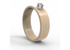 Výjimečný přírodní zásnubní prsten vysoké kvality. Je ručně vyrobený z kvalitního ohýbaného dřeva, drceného kamene a osazený zirkonem velikosti 3,5 mm. Vnitřní vrstva je vyrobena z javorového dřeva a vnější ze dřeva amerického ořechu. Možnost výběru ze 4 druhů drceného kamene - modrého lapis lazuli, zeleného malachitu, růžového růženínu a bílého mramoru.
